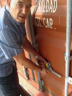 Fotos inferiores: distintos momentos de la carga y salida del contenedor de Ayuda Humanitaria enviado hoy, 17 de septiembre, desde el almacén de JCONGD en la Fundación Instituto San José de Carabanchel (Madrid).